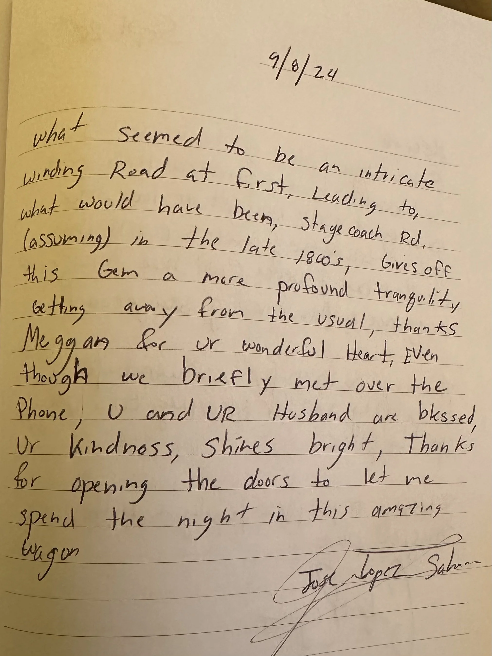 People are the heart of how she runs an Airbnb, and it shows. Take a look yourself at some of the notes that have been left in our Conestoga covered wagon guestbook and reviews from our Airbnb pages. From couples spending the night, to families on vacation, no matter their background, guests leave Prospector Ranch with smiles on their faces and memories to last a lifetime.